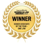 - Hayley was the winner of both the Senior Associate of the Year – SME Law category and the Excellence Award in the Women in Law Awards 2021.